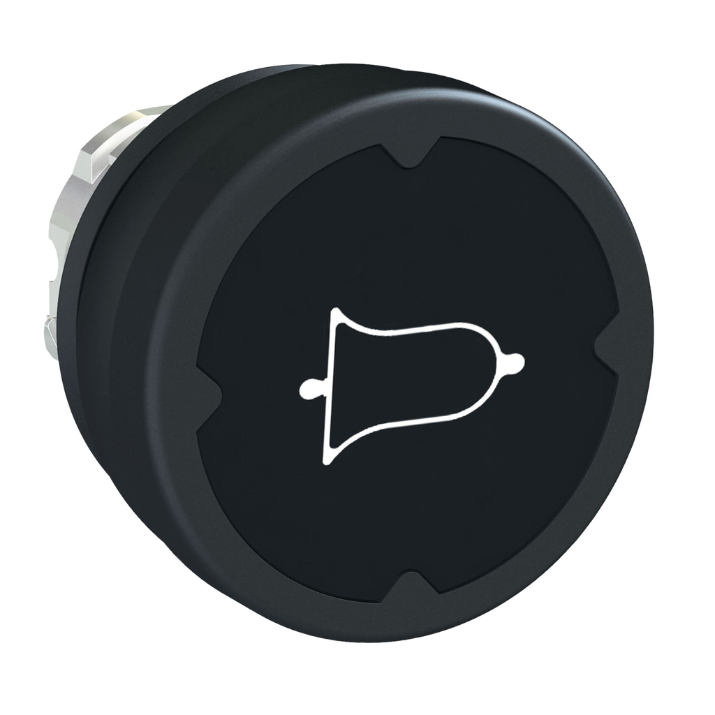 Cabezal de pulsador, Harmony XB4, metal, empotrado, negro, 22 mm, retorno por resorte, para entornos hostiles, leyenda de marcado girada 90 grados