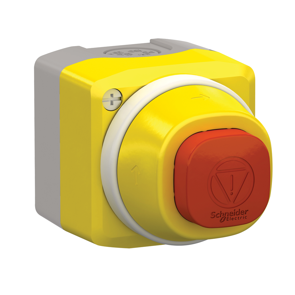 Harmony XALD, XALK, Estación de control, plástico, tapa amarilla, 1 parada de emergencia iluminada, blanco/rojo fijo, girar para liberar, , 1NO 2NC, 24 V CA/CC (Cantidad 40)