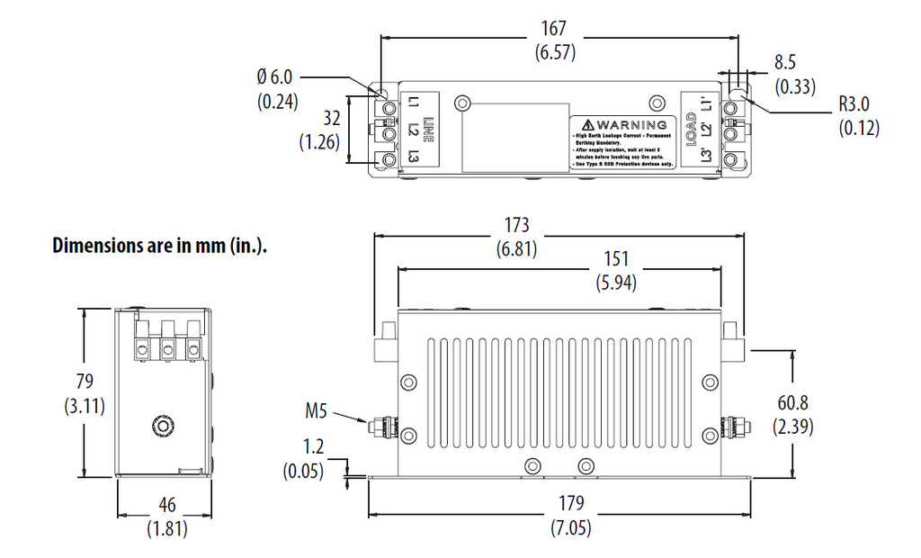2198-DB08-F - 8 Amp single and three phase EMC line filter, Kinetix 5500