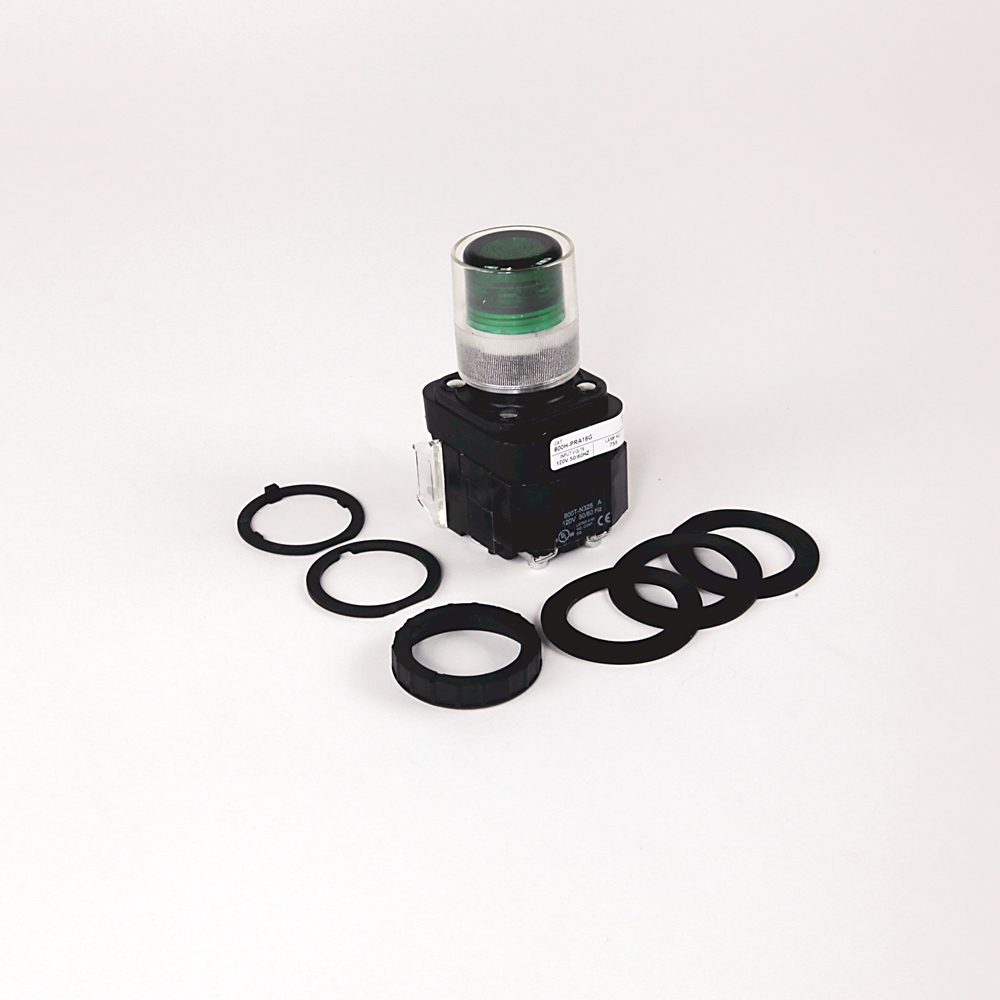 800H-PRA16B - 30.5mm Type 4/4X/13 Mom. Contact PB-Illum., Blue, Ext. Hd w/ Guard, Incand./No Options, 120V AC 50/60 Hz, 1 NO-1 NC