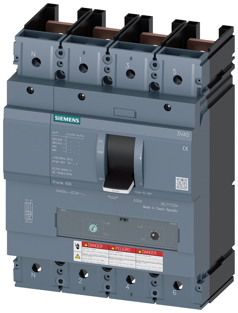 3VA5460-6GF41-0AA0 - BRKR 3VA54 4P 600A 65KA ATAM 100NTRL