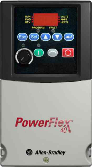 22B-A2P3N104 - PowerFlex 40 AC Drive, 240VAC, 1PH, 2.3 Amps, 0.37 kW, 0.5 HP,Frame Size B, IP20 (Open), LED Display, Digital Keypad, No CE Compliant Filter, RS485