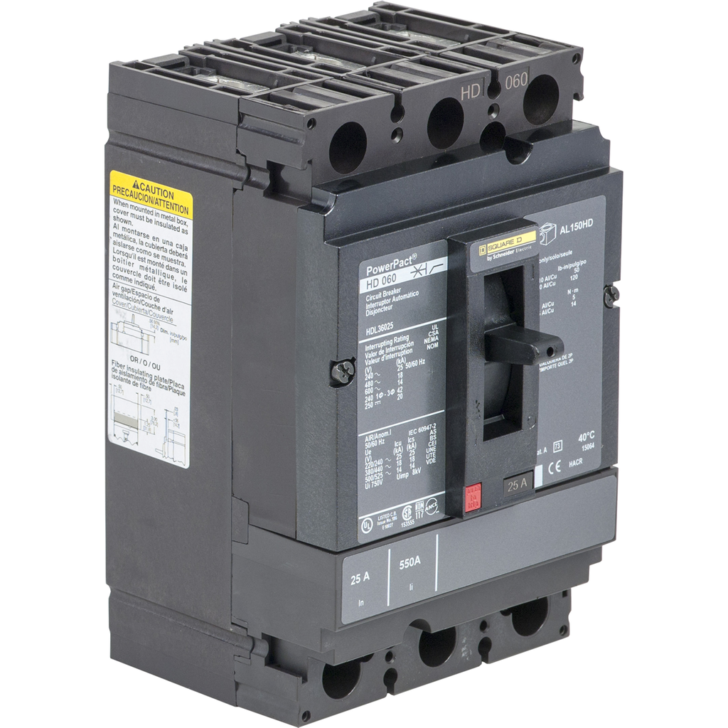 HGL36015C - Circuit breaker, PowerPacT H, 15A, 3 pole, 600VAC, 18kA, lugs, thermal magnetic, 100%