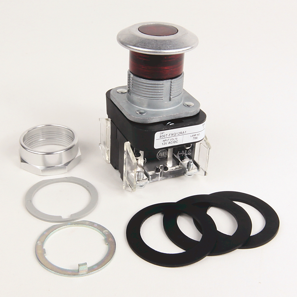 800T-FXQ24RA - 30.5mm Type 4/13 2 Pos. PB-Illum., Push-Pull, Red, Mushrm Hd, Incand., 24V AC/DC, 1 NO-1 NC