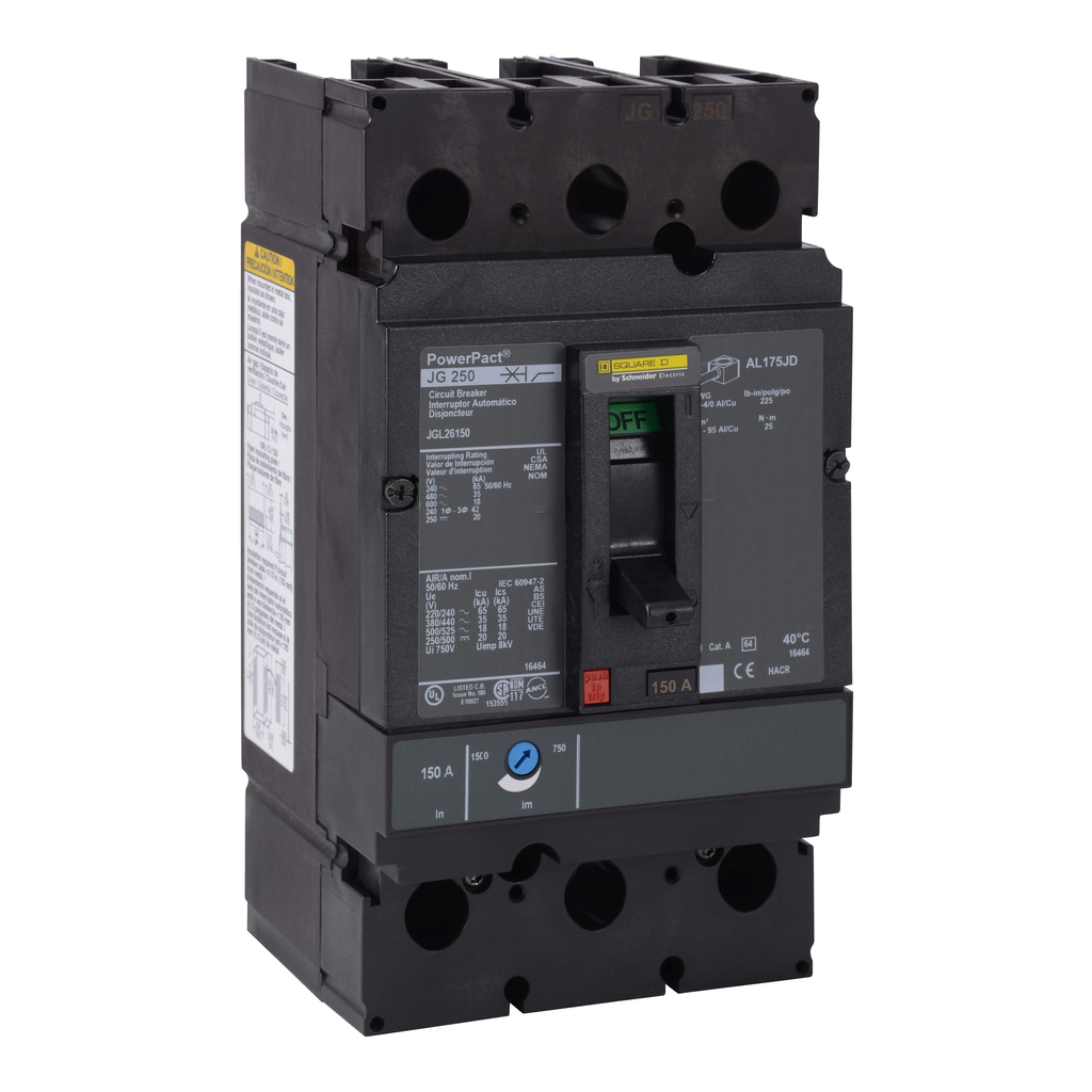 JGL26150 - Circuit breaker, PowerPacT J, 150A, 2 pole, 600VAC, 18kA, lugs, thermal magnetic, 80%