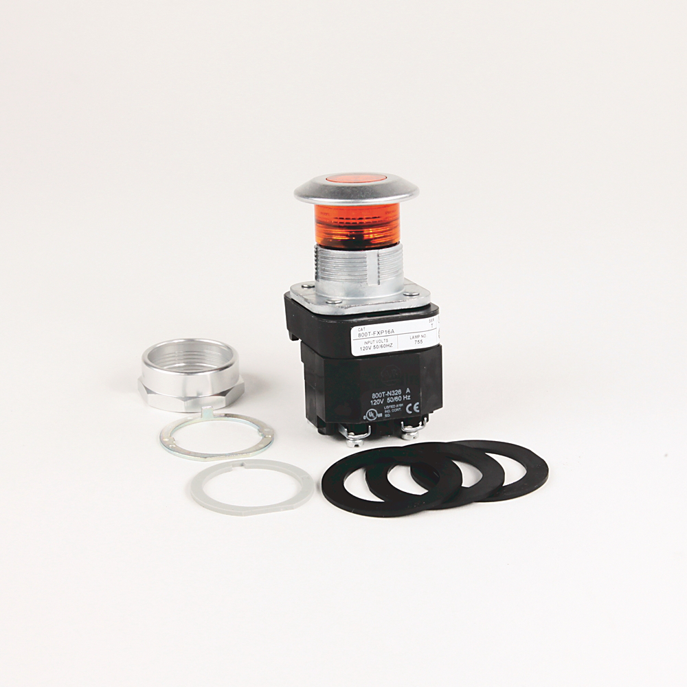 800T-FXP16AA5 - 30.5mm Type 4/13 2 Pos. PB-Illum., Push-Pull, Amber, Mushrm Hd, Incand., 120V AC 50/60 Hz, 2 NCLB